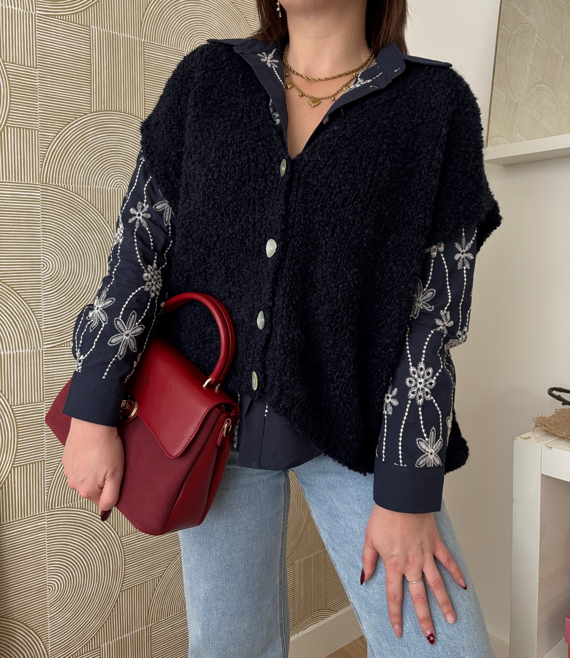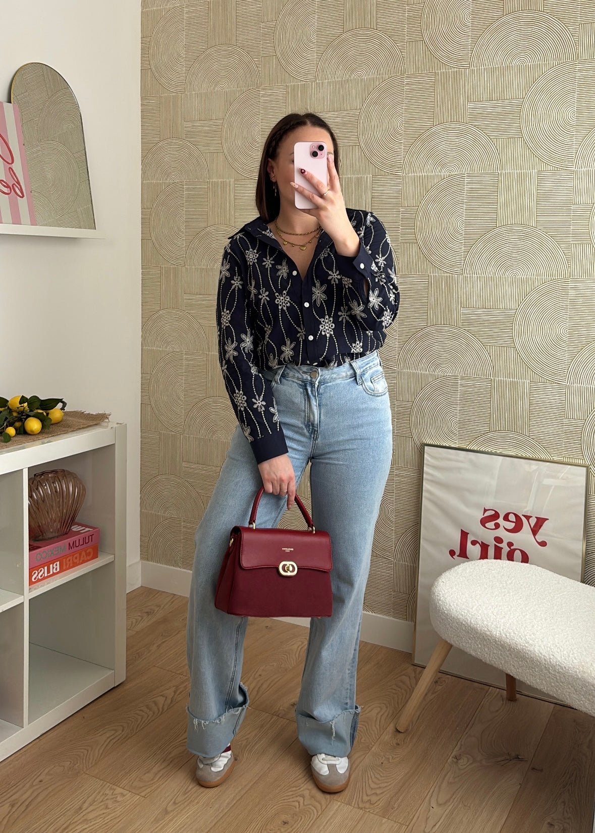 Cette chemise 100% coton séduit par sa broderie florale blanche et sa matière naturelle agréable à porter. Idéale avec un jean clair ou une jupe pour un look chic et lumineux, parfaite en toute saison.