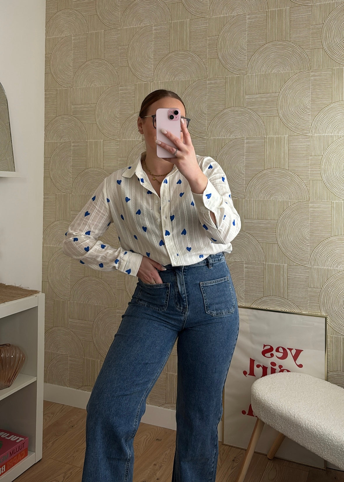 Craquez pour cette chemise blanche à motifs cœurs bleus, à la fois élégante et pleine de charme. Son imprimé délicatapporte une touche originale et féminine, parfaite pour twister un look du quotidien.