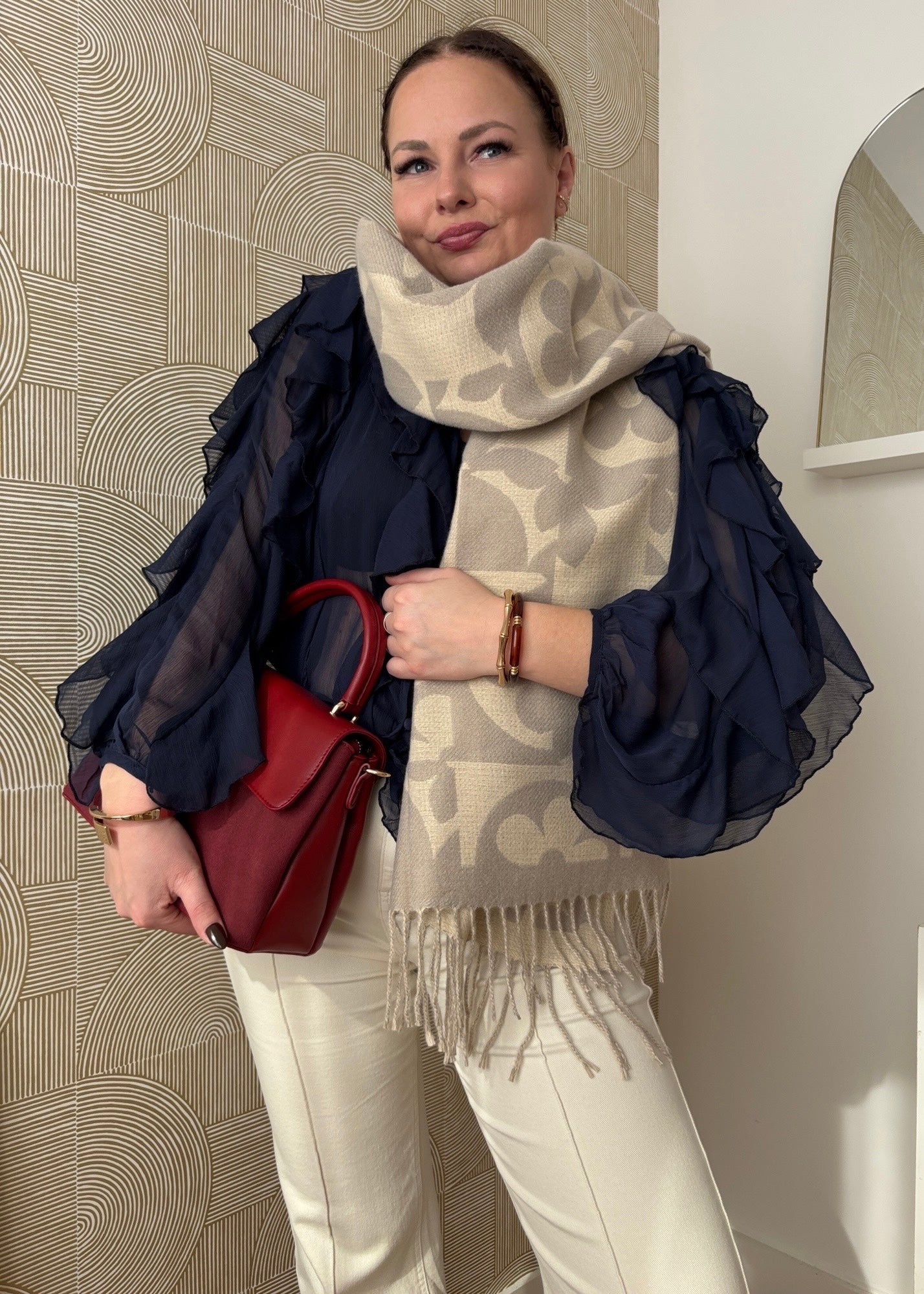 Un foulard doux et élégant, parfait pour accompagner vos looks d’automne et d’hiver 🤎 On adore son motif floral chic, ses teintes profondes bleu marine et gris, et sa matière douce qui garde bien la chaleur sans alourdir la silhouette.
