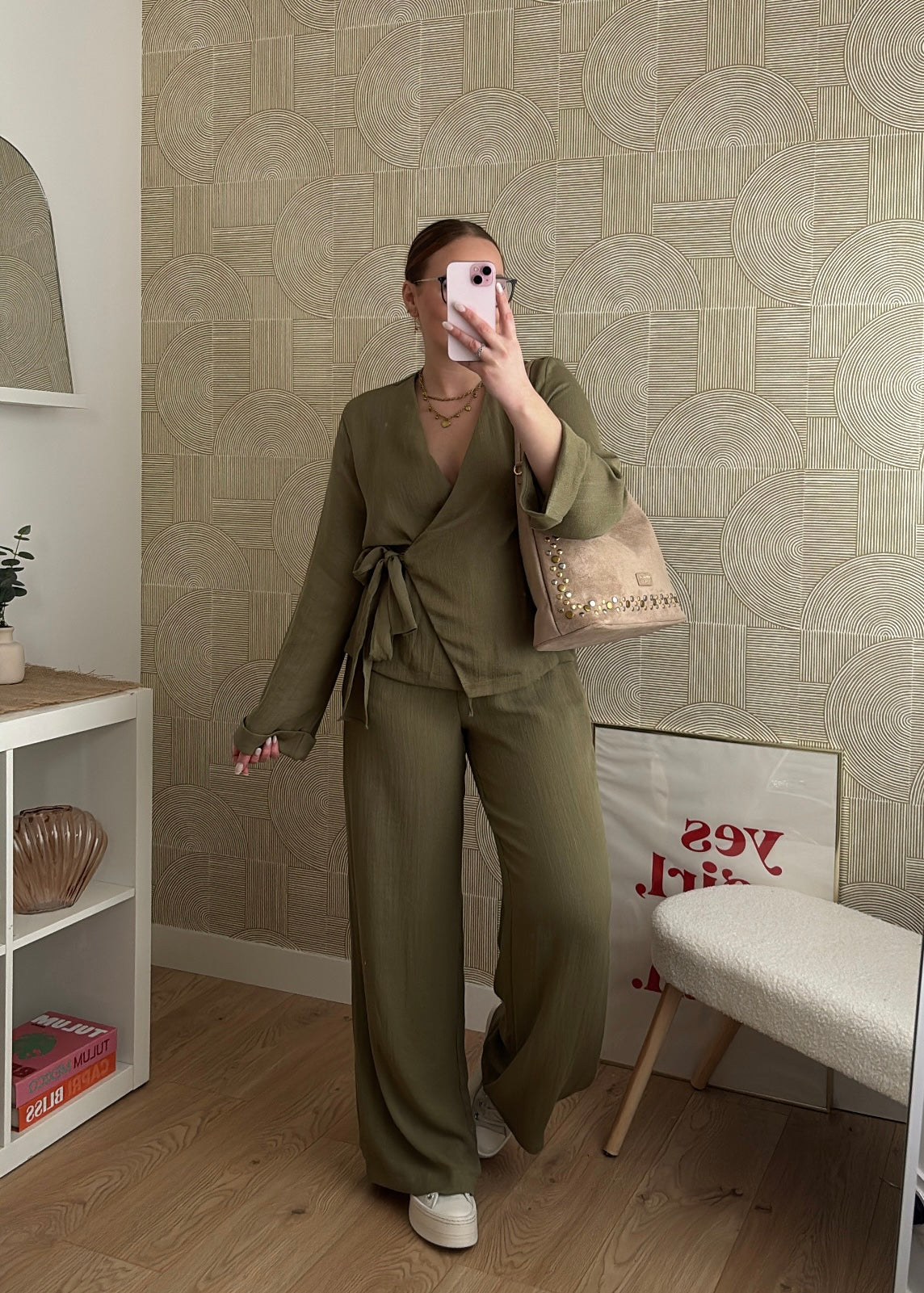 ✨ ENSEMBLE FLUIDE CACHE-CŒUR KAKI ✨