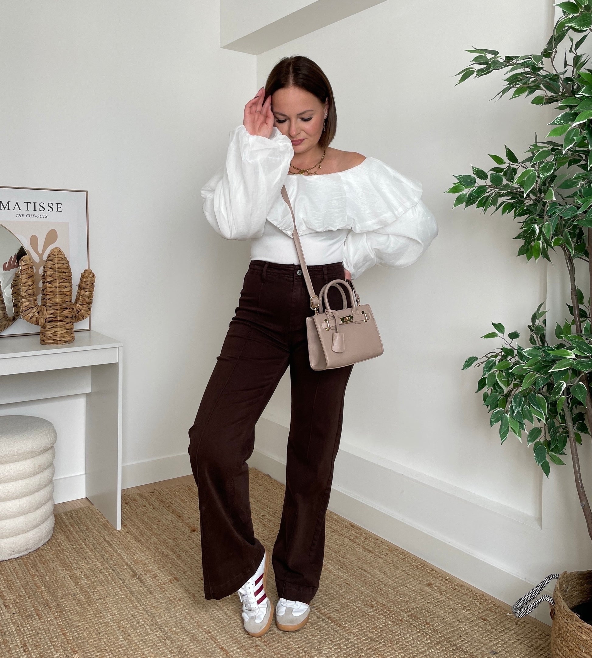 Jeans wide marron - CHATAIGNE
