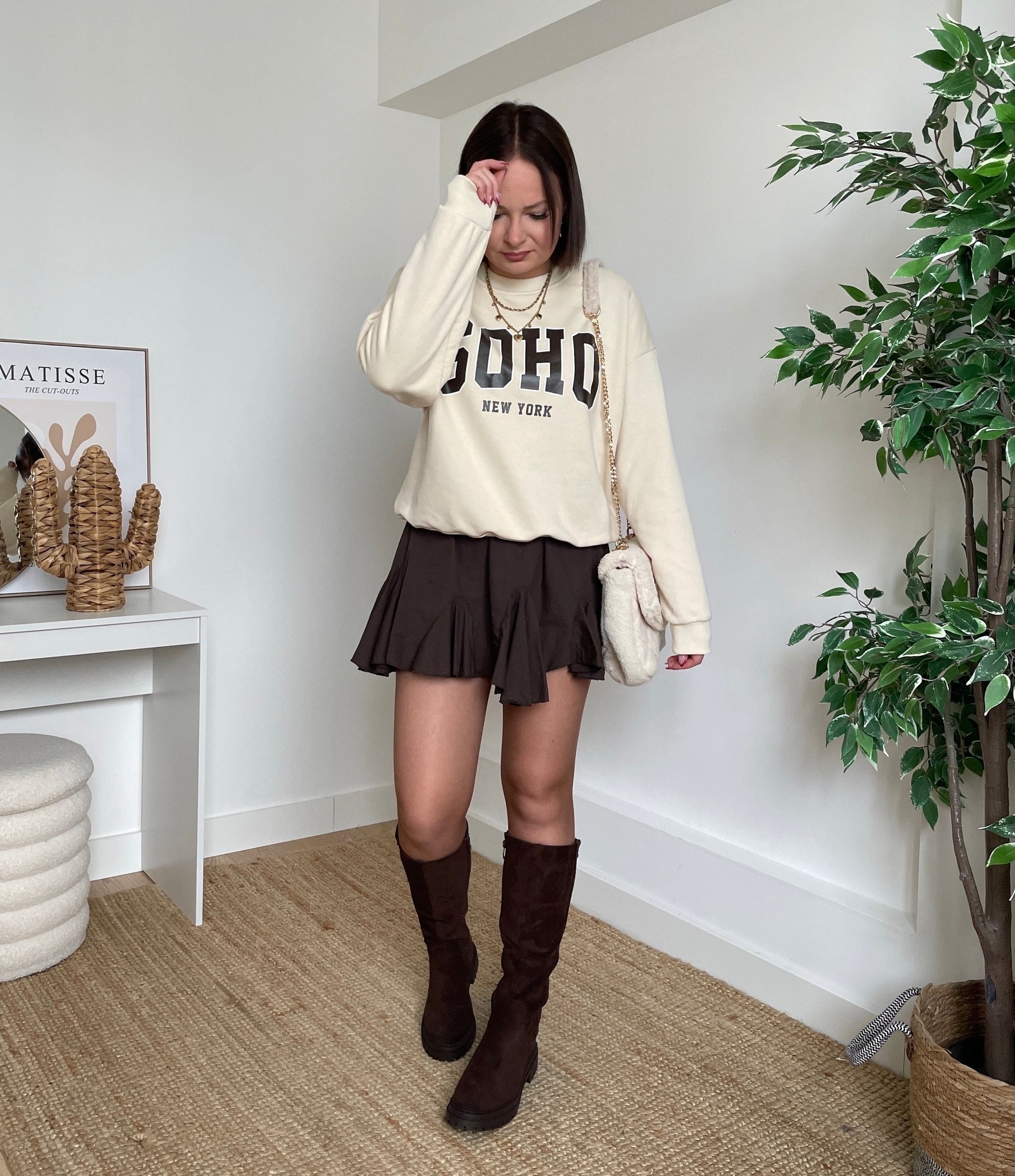 Une jupe-short marron féminine et pratique, parfaite pour vos looks de saison
