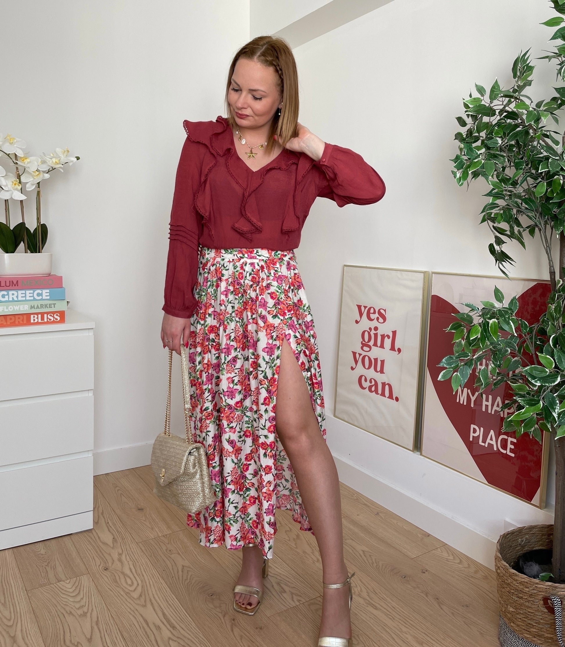 • Fermeture sur le côté avec des boutons assortis au motif, permettant un ajustement de la fente