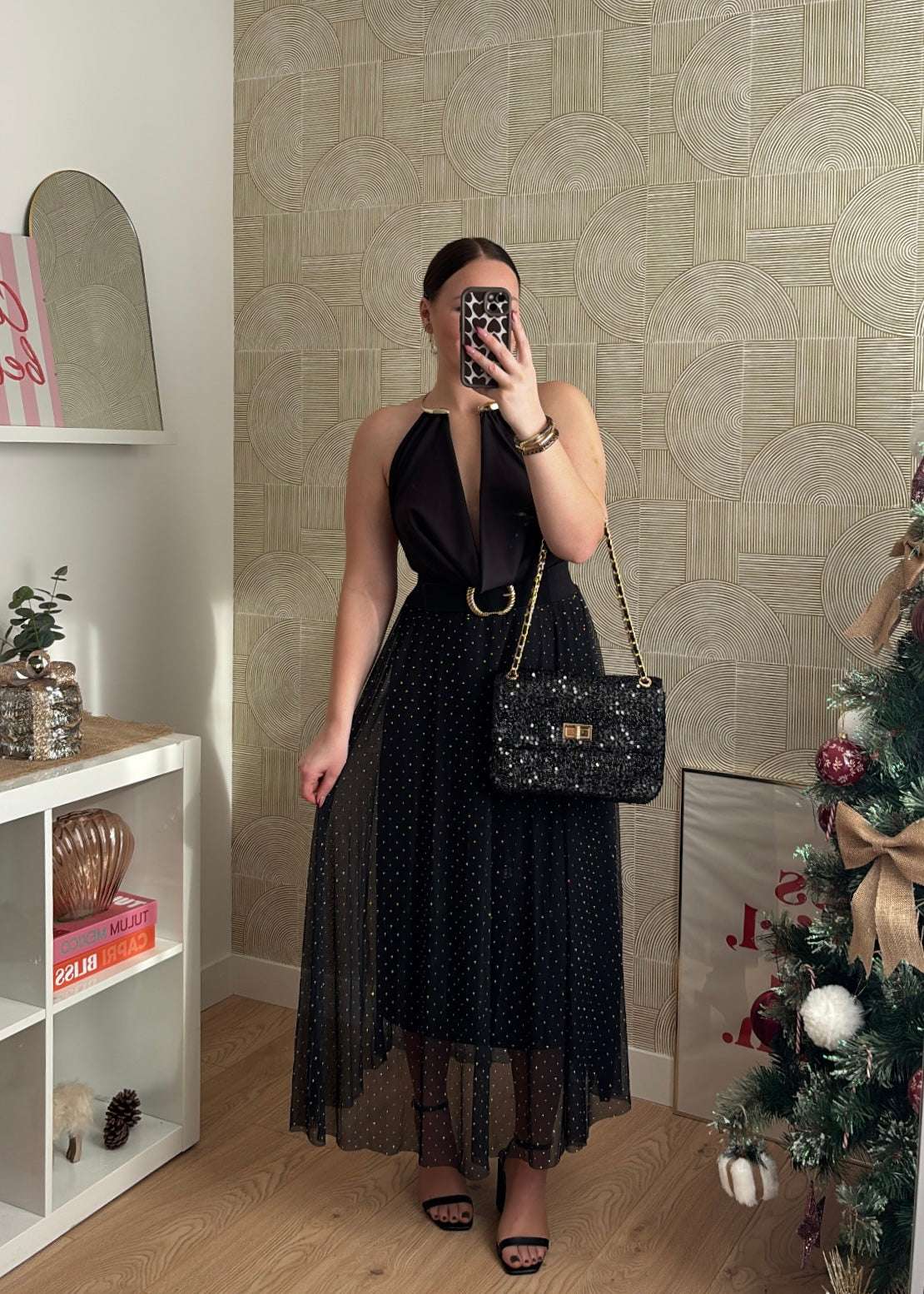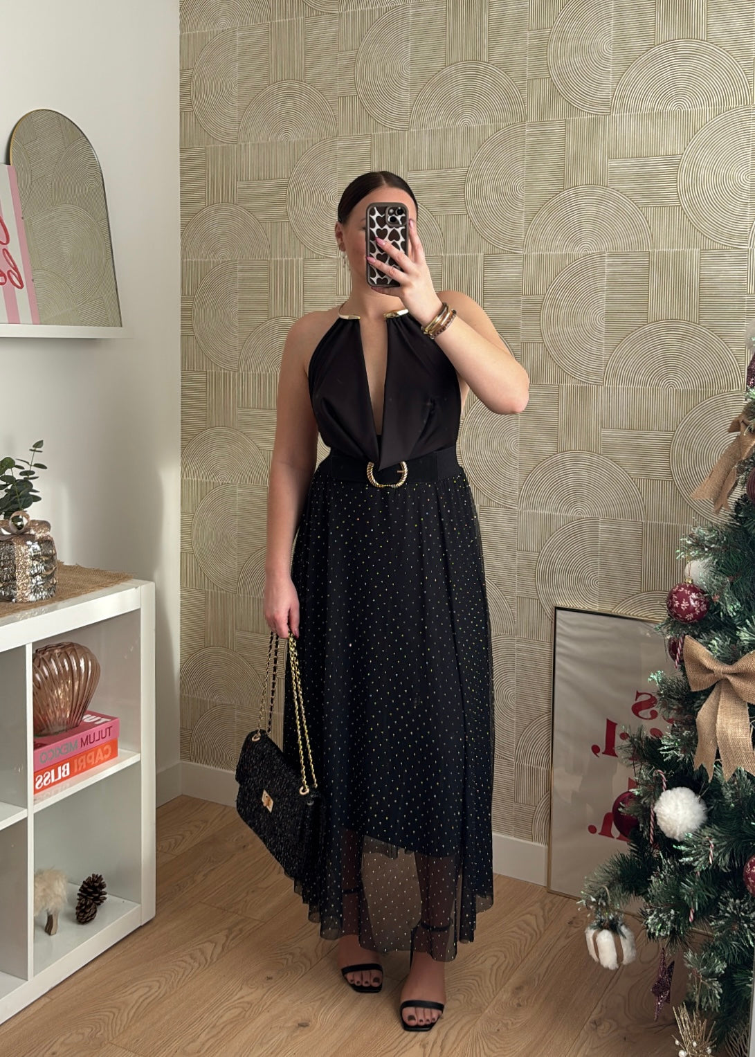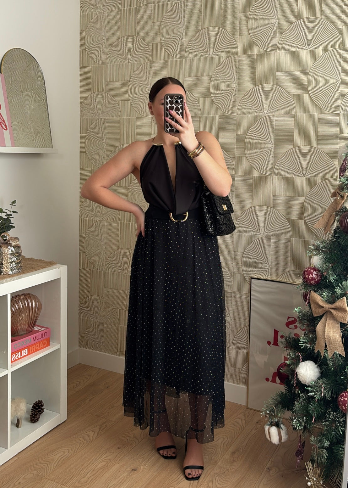 Une jupe longue fluide et lumineuse, parfaite pour les fêtes ou une soirée chic ✨