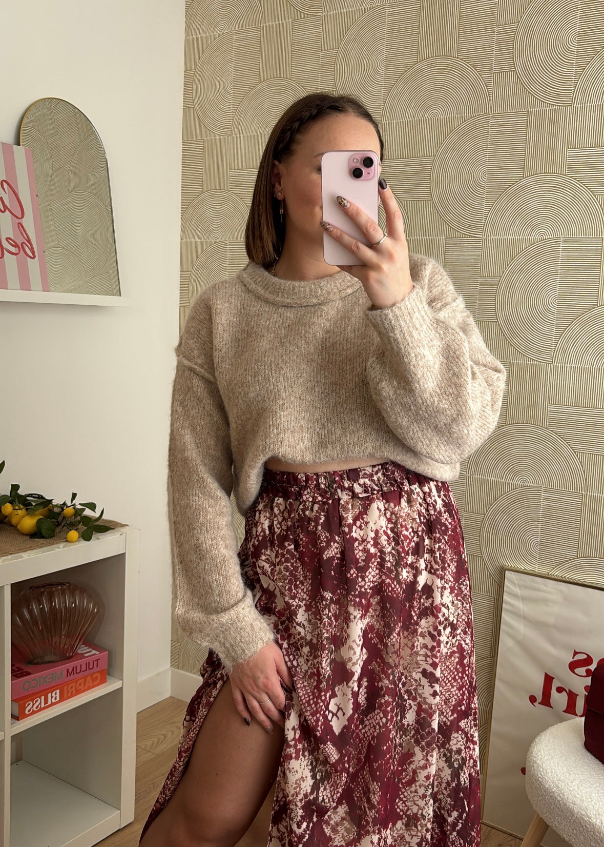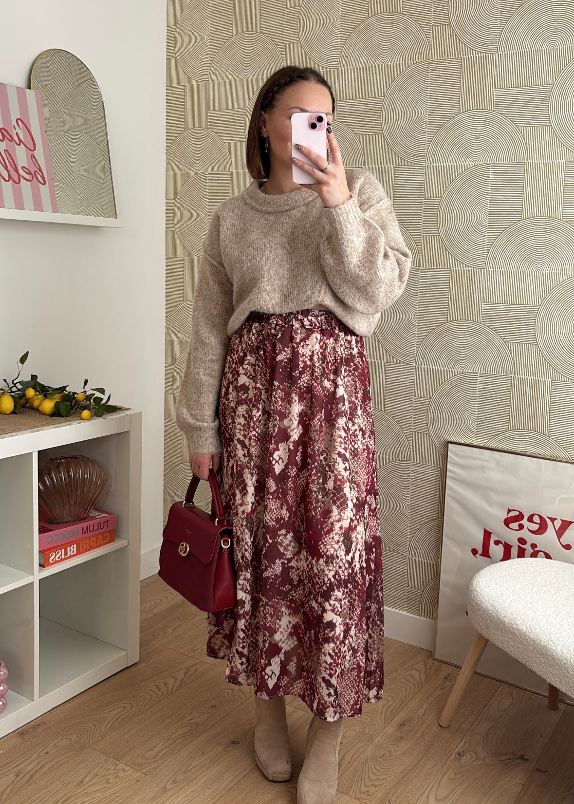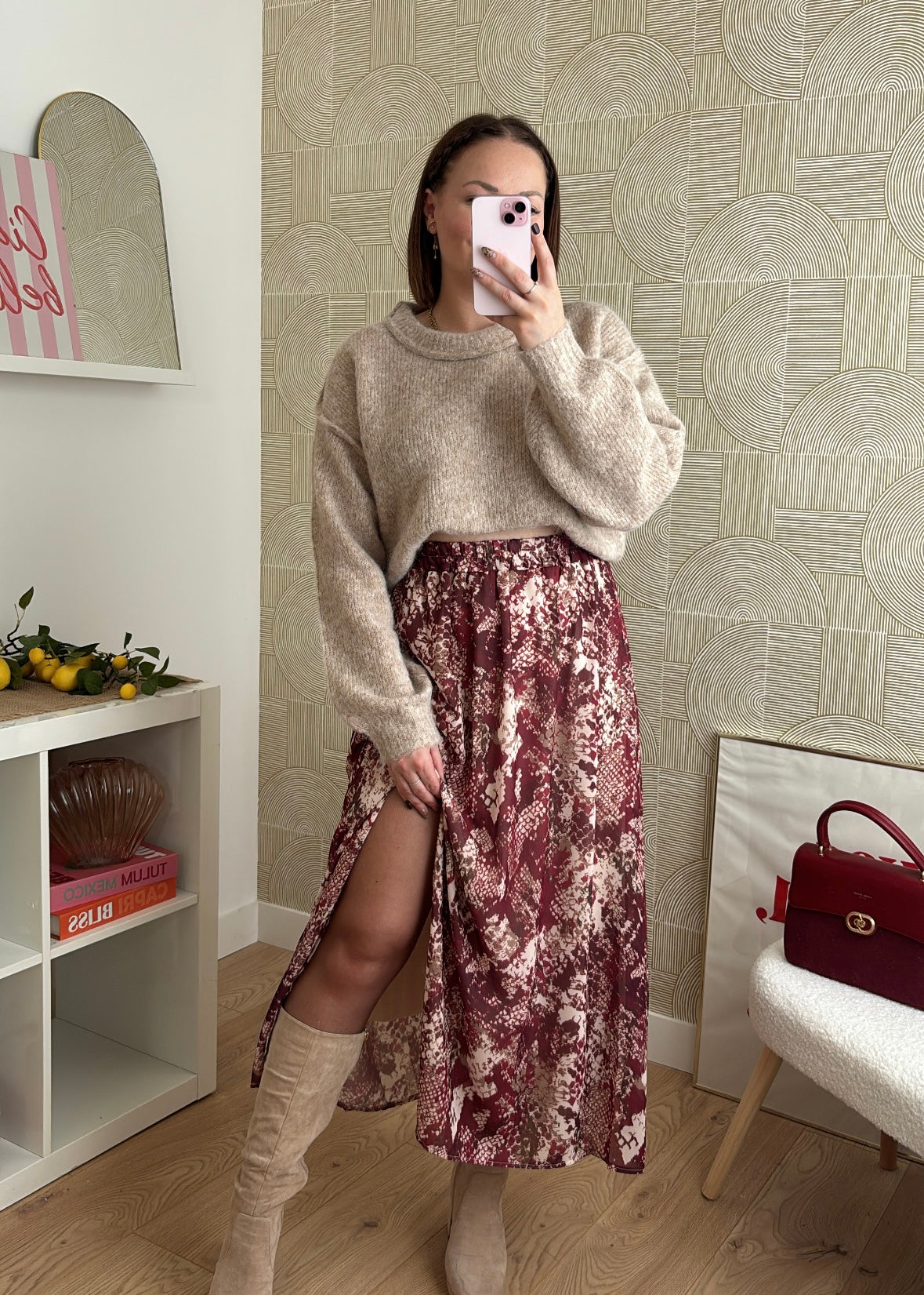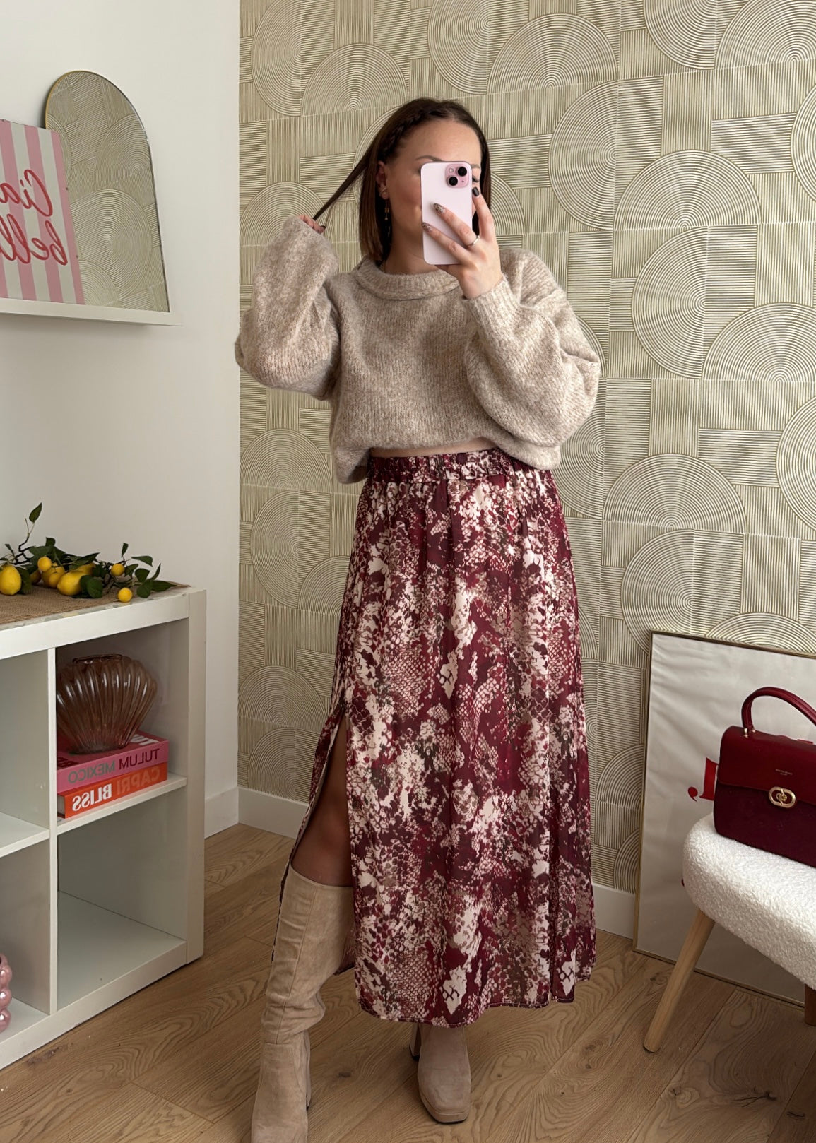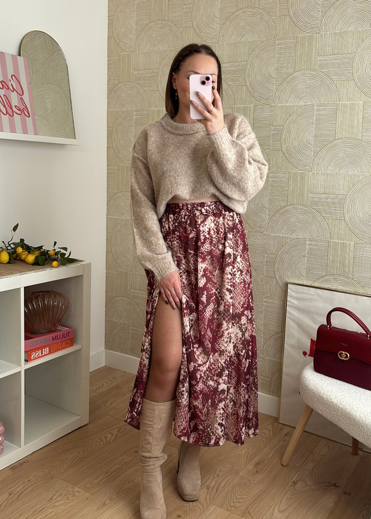 Originale et tendance, cette jupe apporte une touche élégante à votre tenue. Sa coupe fluide et sa taille élastique assurent confort et féminité au quotidien.
