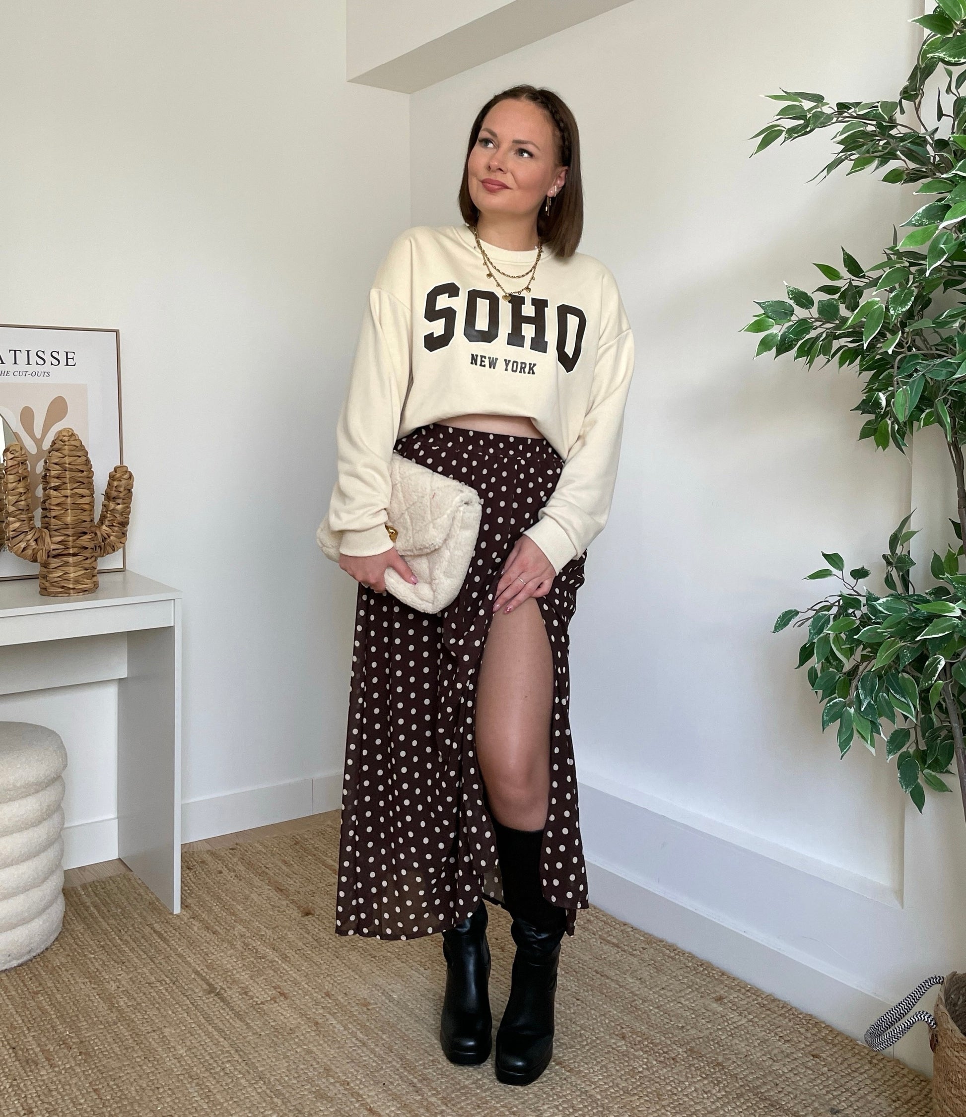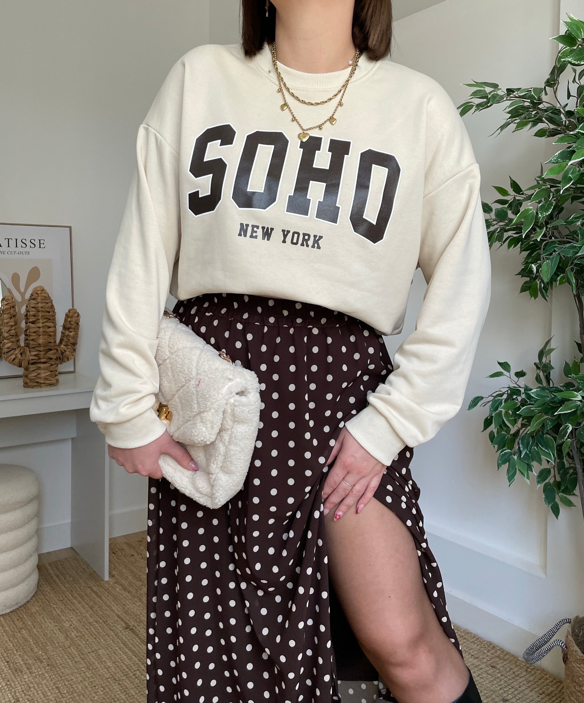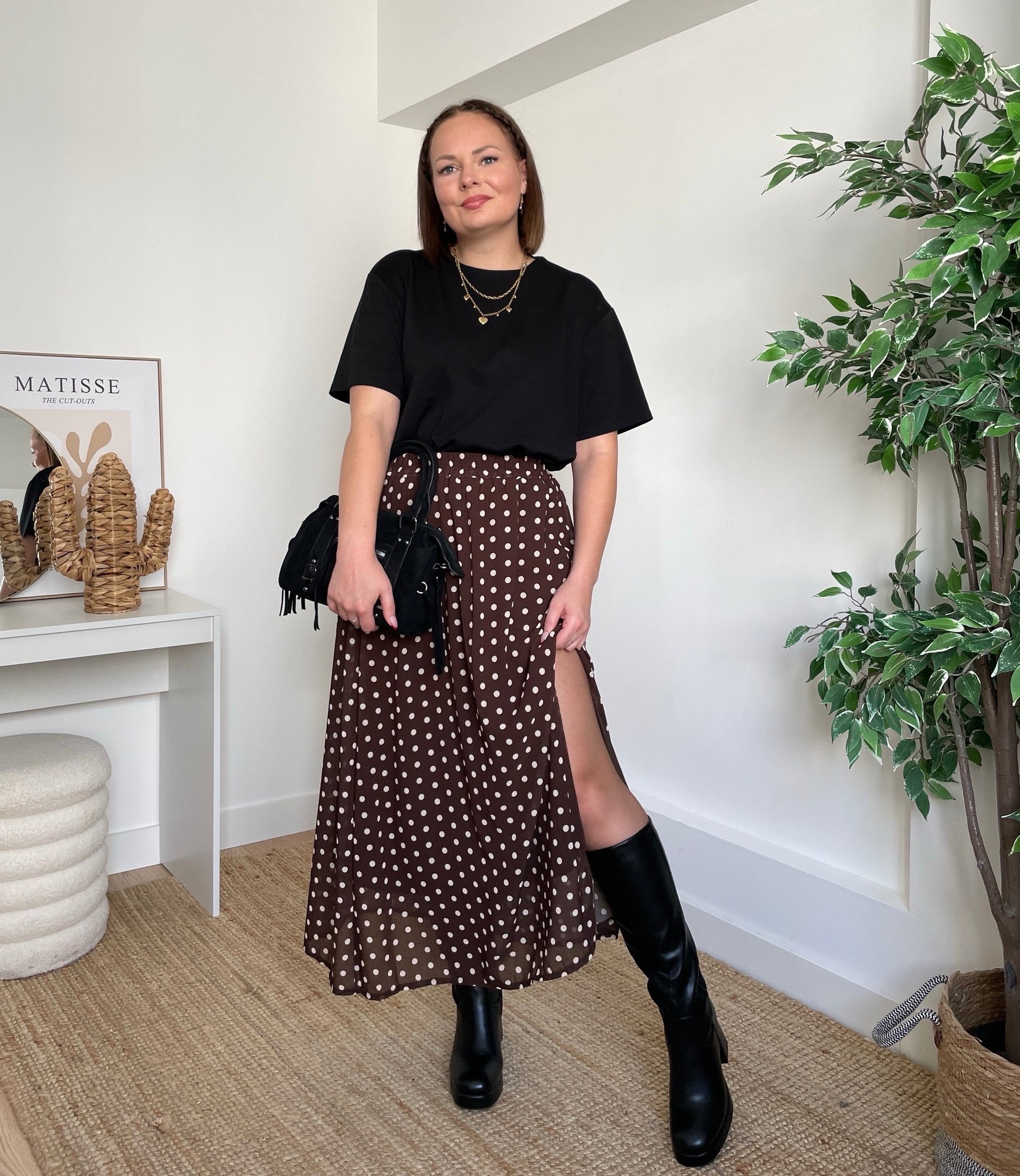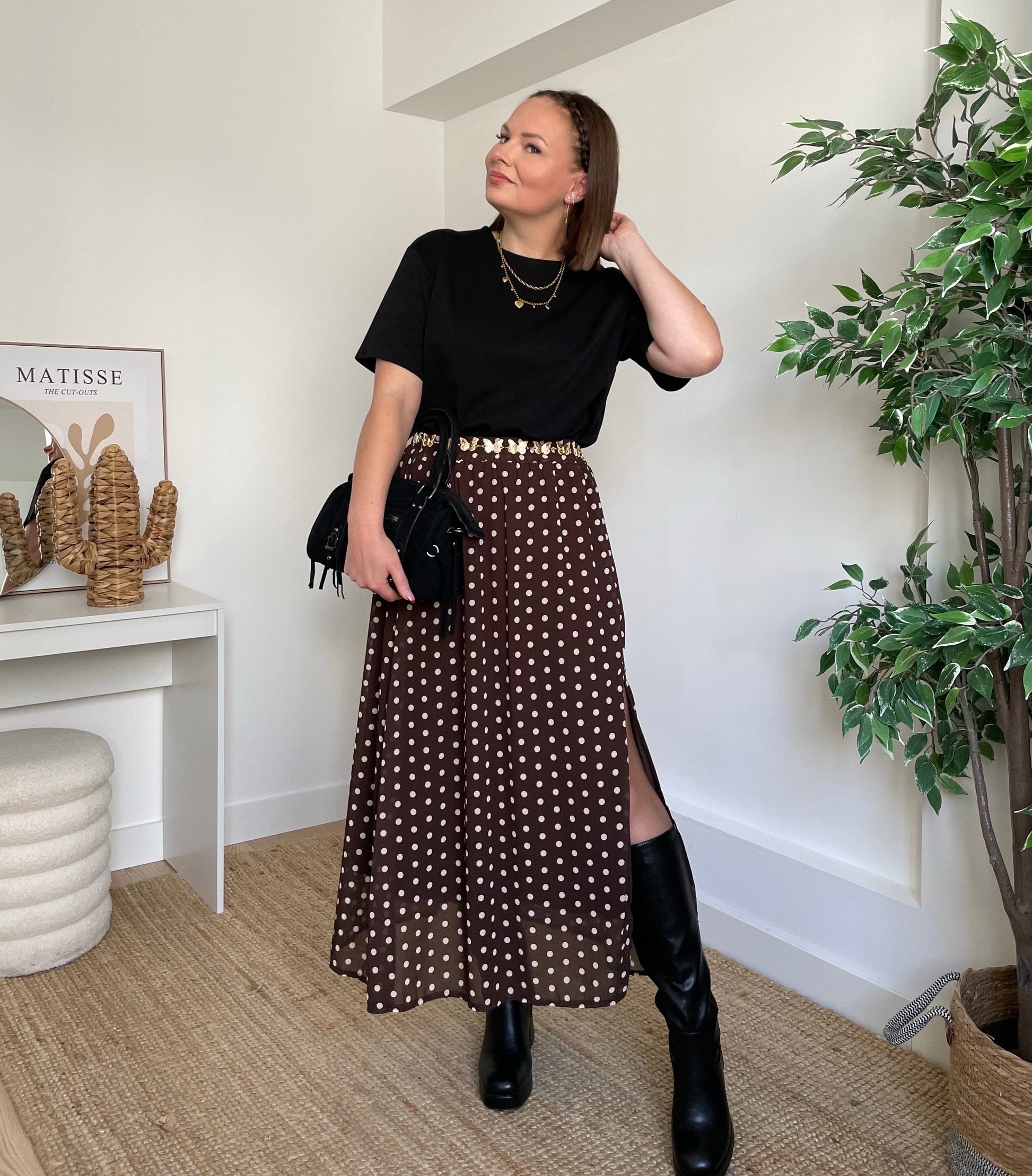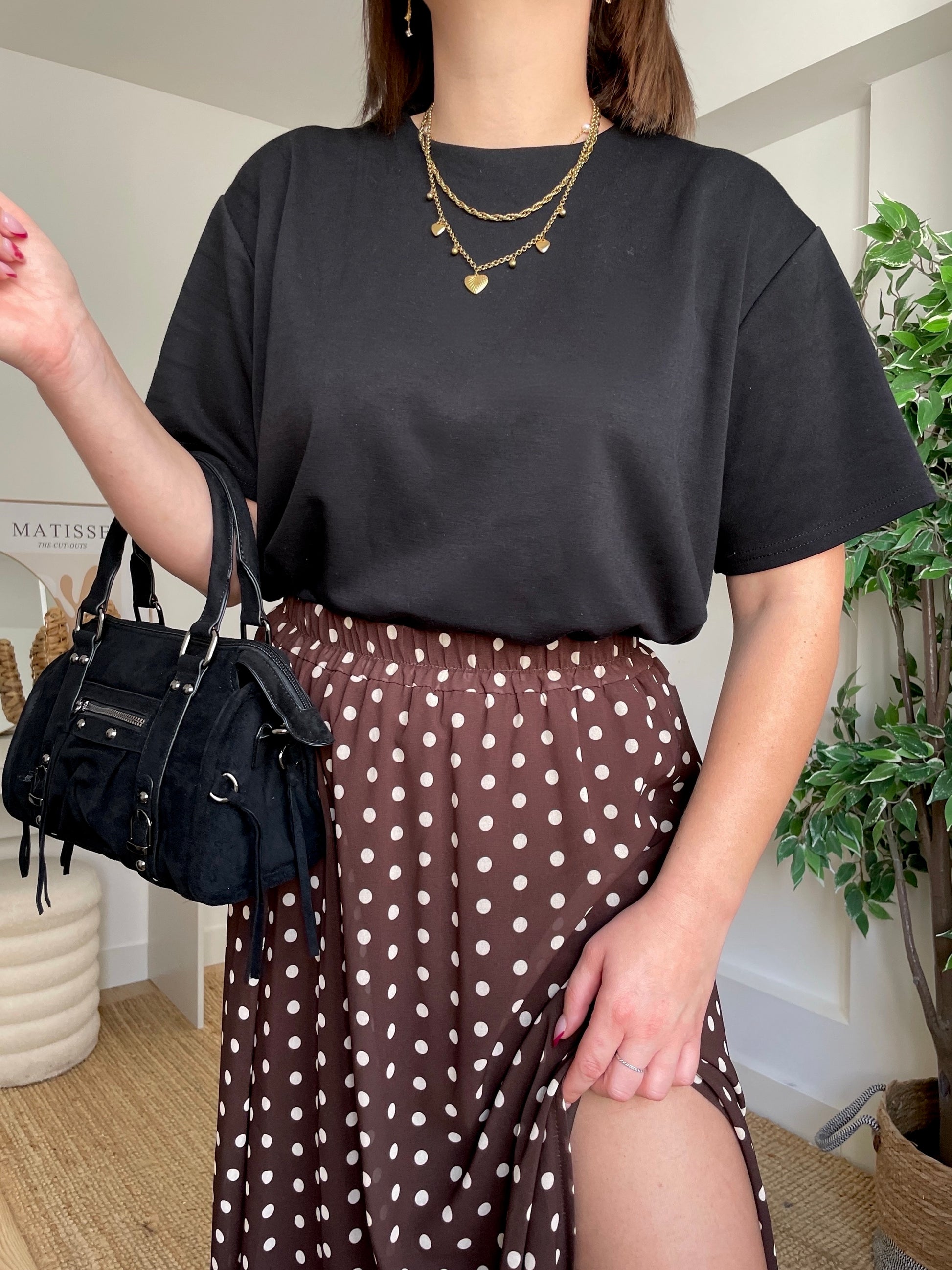 Souple et féminine, cette jupe longue à pois est idéale pour la saison. Sa coupe fluide et sa fente apportent élégance et confort au quotidien.