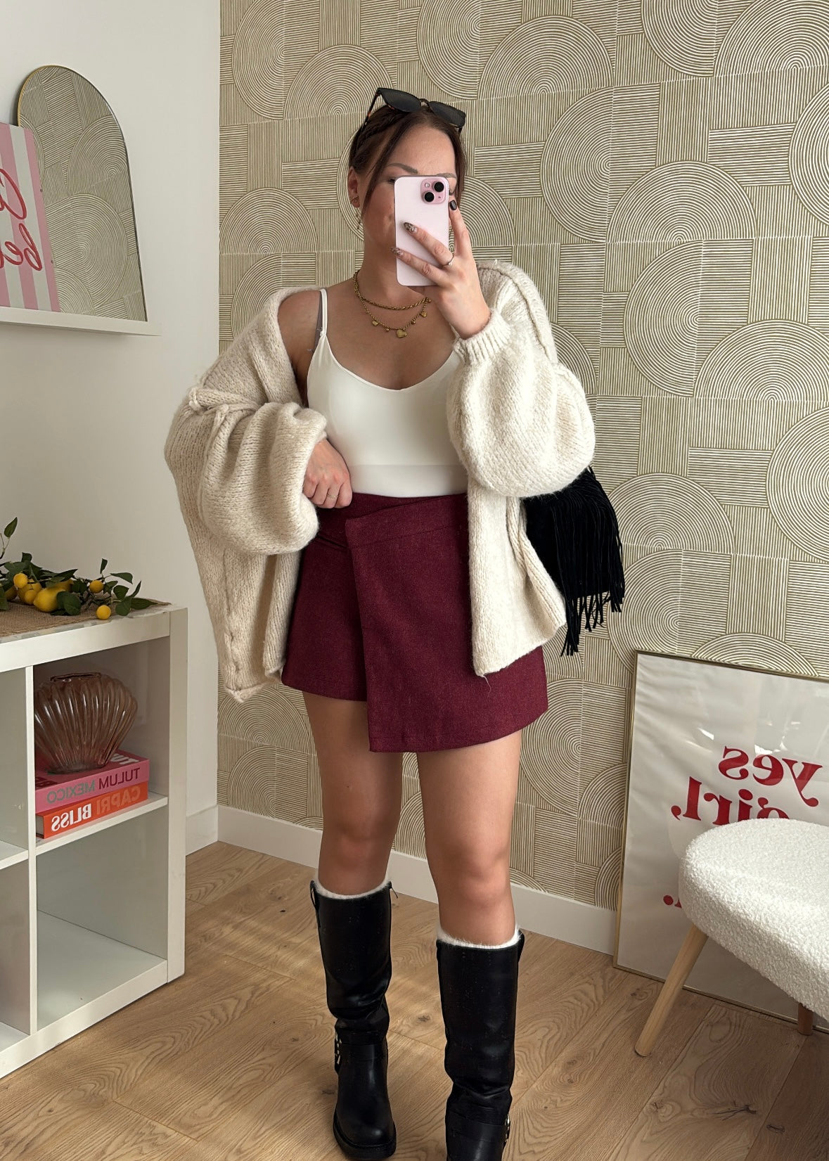 Complétez votre look avec ce short élégant effet bouclette. Associé à son blazer assorti, il forme un ensemble chic et tendance, idéal pour un look moderne et raffiné.