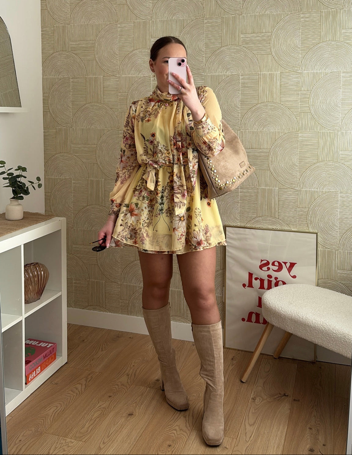 ROBE FLEURIE À LIEN NOUÉ – JAUNE & TONS AUTOMNAUX